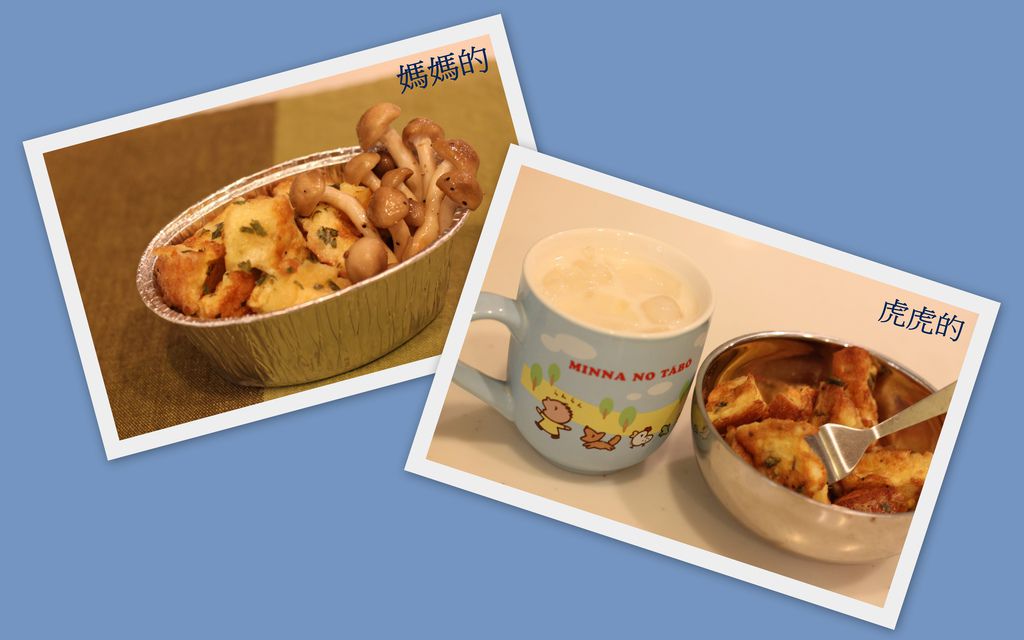 【今日早餐: 義大利香料蛋煎法國麵包, 炒鴻喜菇, 養樂多鮮奶】