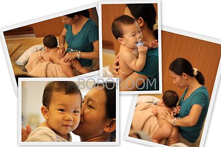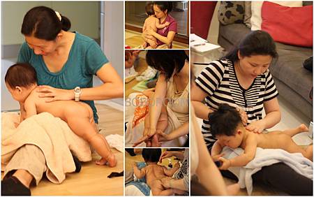 認真的盈希媽媽非常珍惜每一刻可以為寶寶按摩的機會, 自己做起腹部按摩了, 看媽媽的笑容就知道有多麼滿足了。