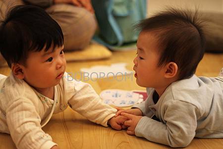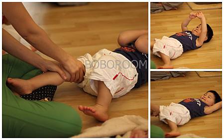 今天BOBOROOM 有位新成員喔! 是妍妍的哥哥, 受邀來當大孩子的麻豆。小蝸牛老師偷偷聽到哥哥說想幫妹妹按摩, 要媽媽按BOBO(假娃娃)呢! 其實手足間的按摩也可以緩和兄妹間的競爭心理, 讓兄妹感情更融恰喔!
