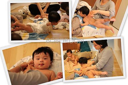 神奇的事真的發生了, 歌聲一開始, 寶寶們全都靜靜躺下來了, 在媽媽愛的雙手撫觸下, 一個個舒服的享受著。